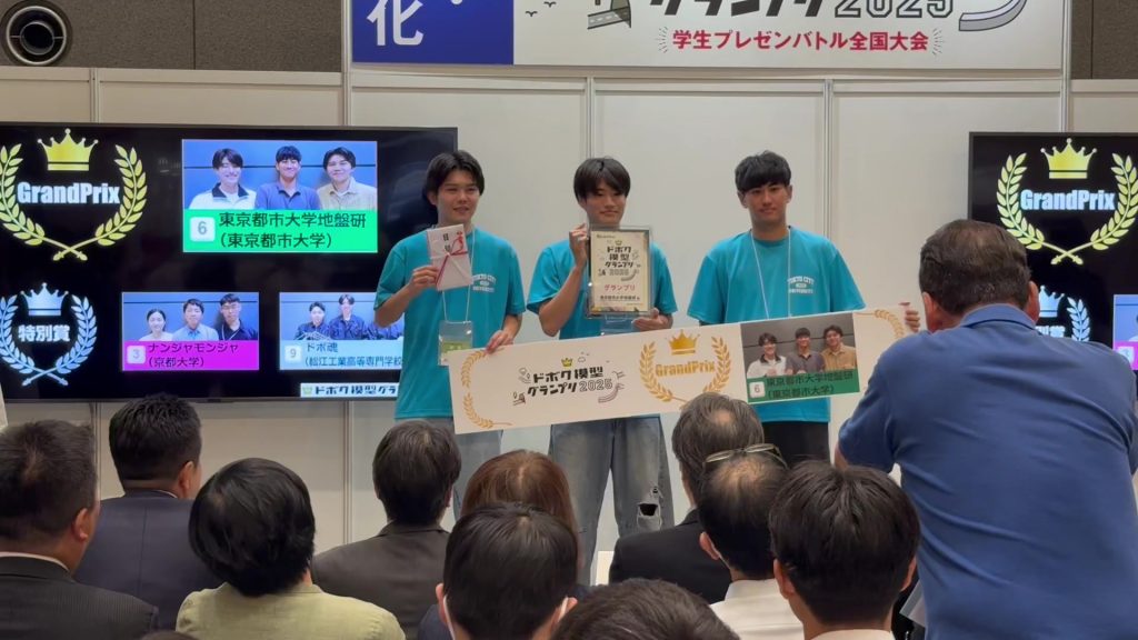チーム「東京都市大学地盤研」(4年 手塚大洋,木村匡寛,志賀光)が グランプリに輝きました。